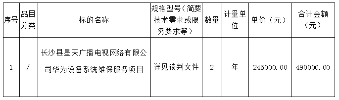 長沙縣星天廣播電視網絡有限公司華為設備系統(tǒng)維保服務項目談判成交公告
