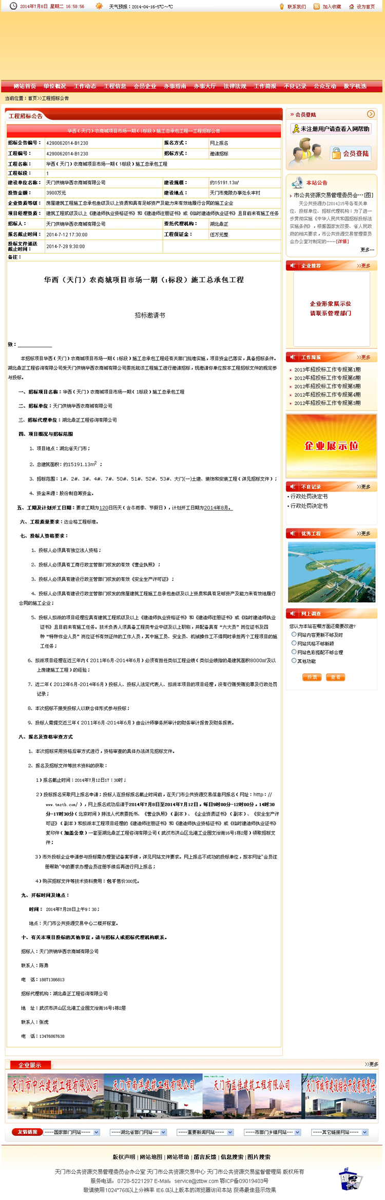 華西(天門)農(nóng)商城項目市場一期(1標段)施工總承包工程
