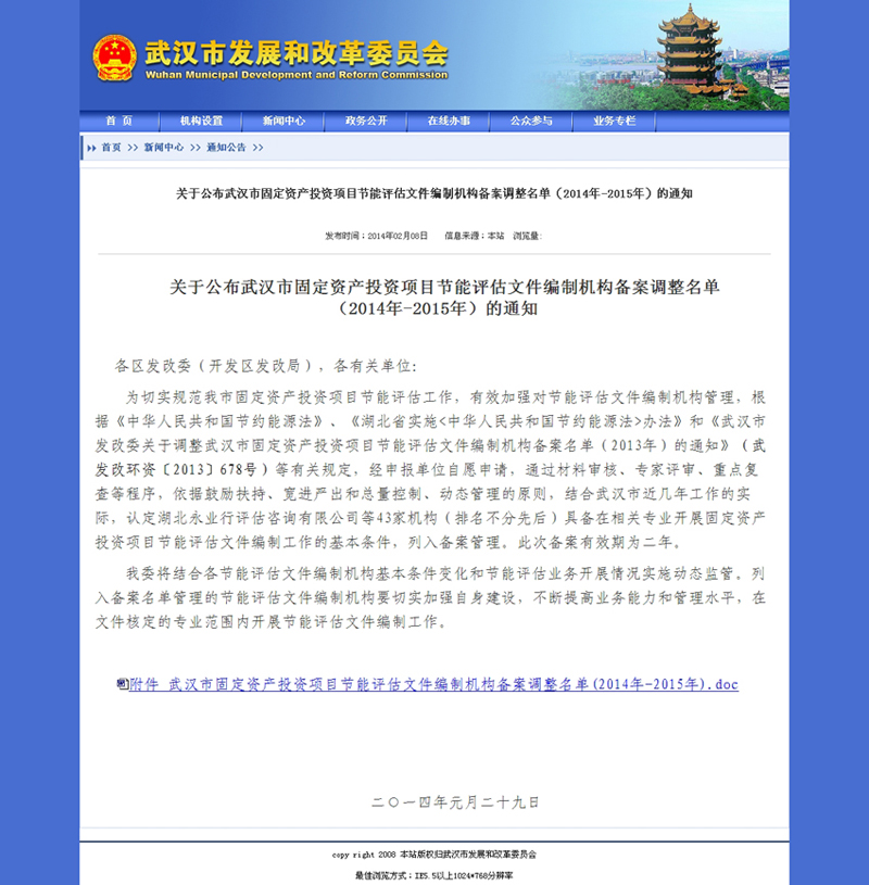 我公司入選武漢市固定資產投資項目節能評估文件編制機構名單