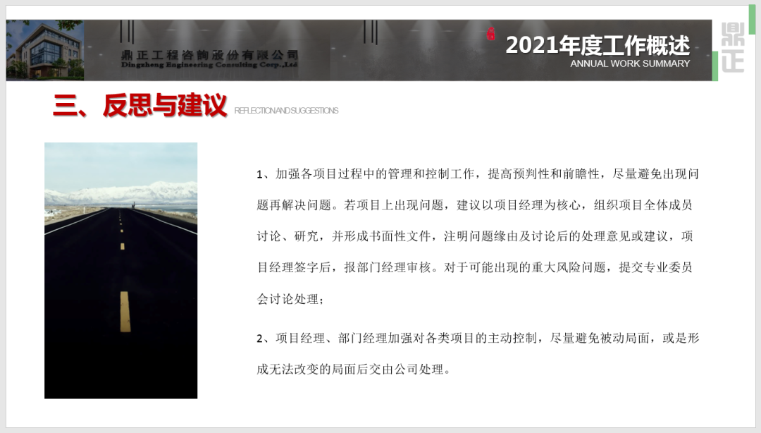 1、工程咨詢事業部:持續保持積極向上的態度,從人才儲備、資質資信、技術沉淀、經驗積累等方面做了大量工作,為部門“十四五”發展做了充足的準備。