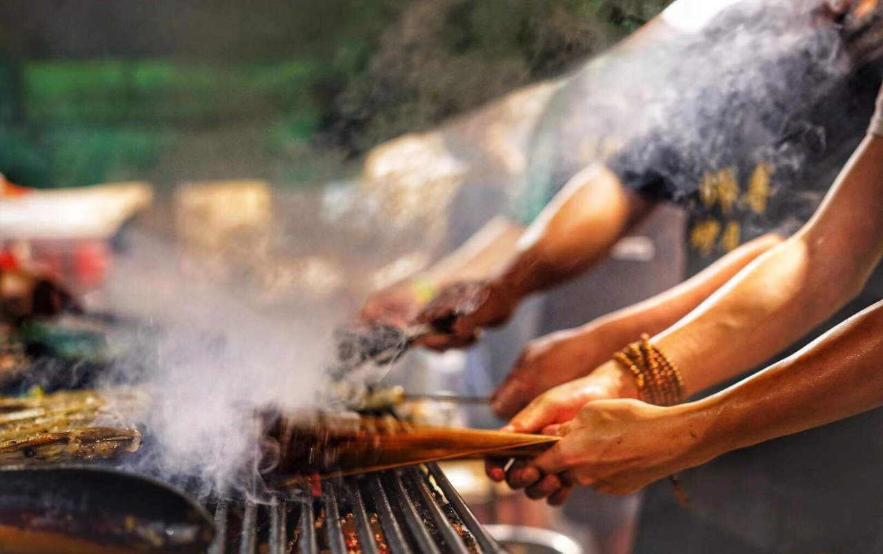安陸燒烤好吃的關鍵是集成效應最大化。首先是選食材,安陸燒烤注重食材的本味,選用的食材要優質的、新鮮的,從源頭上確保食品安全。其次是穿串手藝,從肉類到蔬菜,從飛禽走獸到生猛海鮮,從家常蔬果到無名野菜,處理好才能體驗極致的鮮嫩口感;接著是世世代代與燒烤打交道的安陸人研制出來配置的各種香料心得,讓看起來大同小異的燒烤有了許多有趣的靈魂;最后是燒烤技術,猛火炙烤,小火催熟,一把鹽、一把孜然、一把辣椒,豐富的油脂滴在木炭上,升騰起一陣猛火。每一道工序都不能少,每一個步驟都不容絲毫馬虎,多個專業集成才能制作出美味的安陸燒烤。