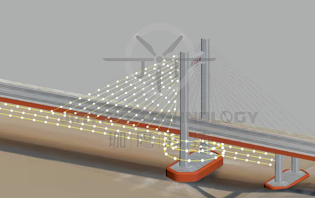 珈鷹根據這座斜拉索大橋所處的位置環境選擇了適合的無人機型號和載荷,進行必要的調試與檢查。采用多源數據融合的方法,攻克了衛星信號盲區這一難題,進而可對橋梁底部、橋墩、支座、側面、橋塔、橋索等部位的外觀進行全面高清圖像采集。