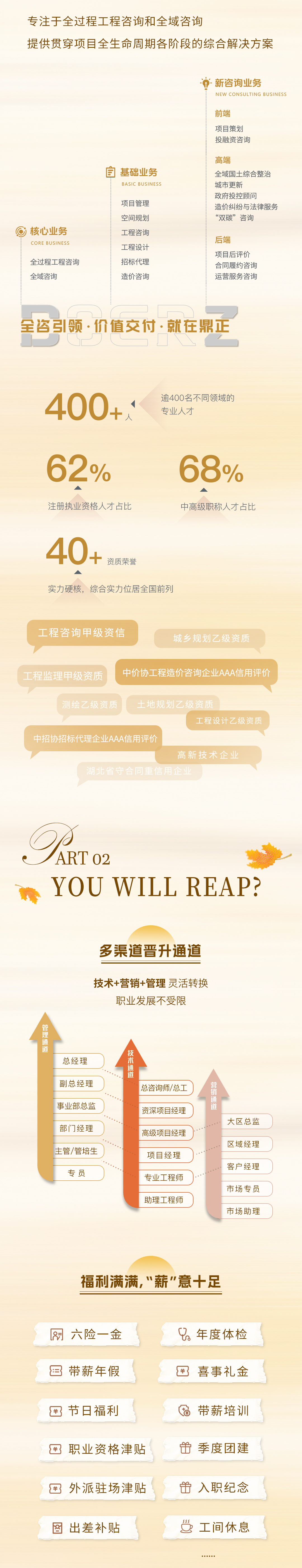 業績涉及各類公建、工業、能源、環保、交通、市政、城市軌道、國土整治等行業,包括海內外各類建設項目的工程咨詢、工程招標代理、工程造價咨詢、項目管理等咨詢業務...