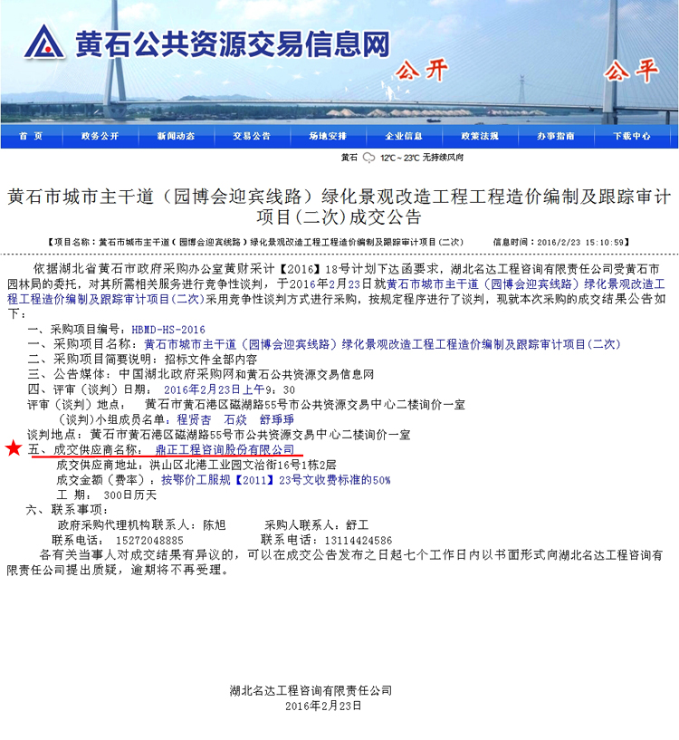 【經(jīng)營成果】我司中標(biāo)黃石市城市主干道(園博會(huì)迎賓線路)綠化景觀改造工程工程造價(jià)編制及跟蹤審計(jì)項(xiàng)目(二次)