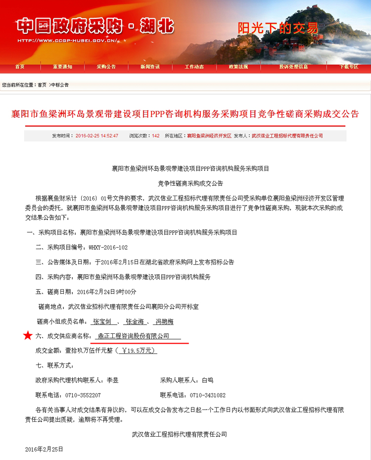 【經(jīng)營成果】我司中標(biāo)襄陽市魚梁洲環(huán)島景觀帶建設(shè)項(xiàng)目PPP咨詢機(jī)構(gòu)服務(wù)采購項(xiàng)目