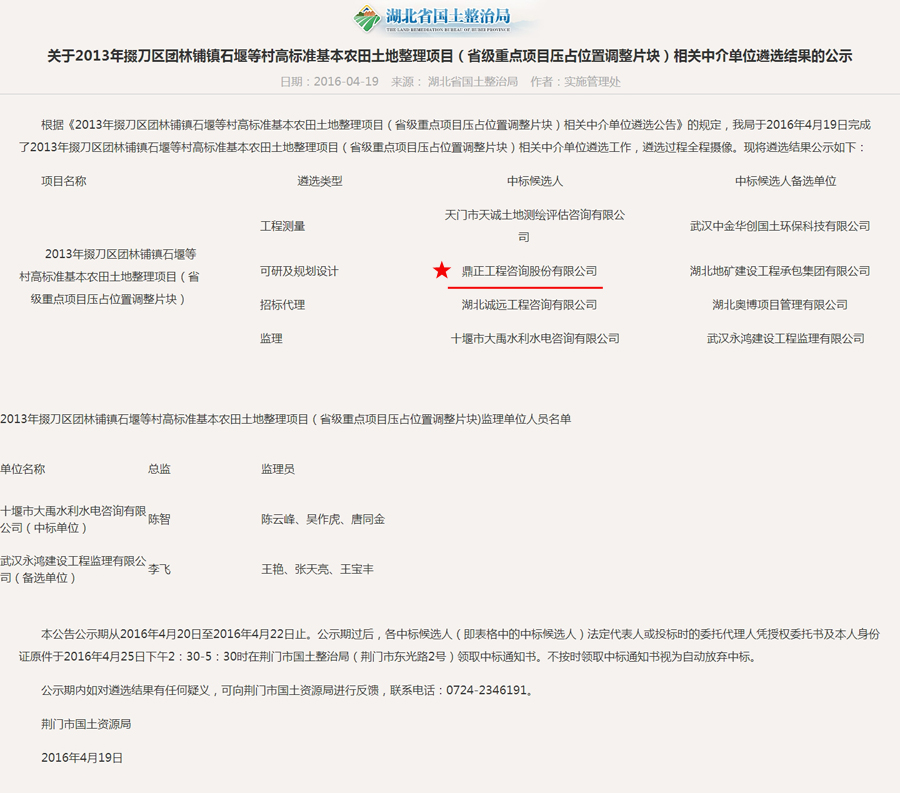【經(jīng)營(yíng)成果】我司入選2013年掇刀區(qū)團(tuán)林鋪鎮(zhèn)石堰等村高標(biāo)準(zhǔn)基本農(nóng)田土地整理項(xiàng)目(省級(jí)重點(diǎn)項(xiàng)目壓占位置調(diào)整片塊)相關(guān)中介單位