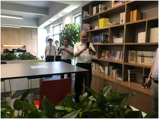 尹教授及各位來賓在我司董事長王雁然先生的陪同下,參觀了我們的辦公樓。當尹教授來到綠意盎然、滿室書香的二樓閱覽室時,還拿出手機連連拍照,每一層看完后尹教授贊不絕口,和陪同人員說:“鼎正的環(huán)境無論是硬件設(shè)備設(shè)施,還是裝修風(fēng)格都領(lǐng)先于同行業(yè) ”。
