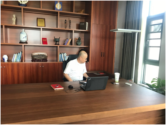 一行人來到三樓寬敞明亮、古樸簡潔、視野遼闊的董事長王雁然先生的辦公室時,尹教授忍不住坐在班臺感受一番。